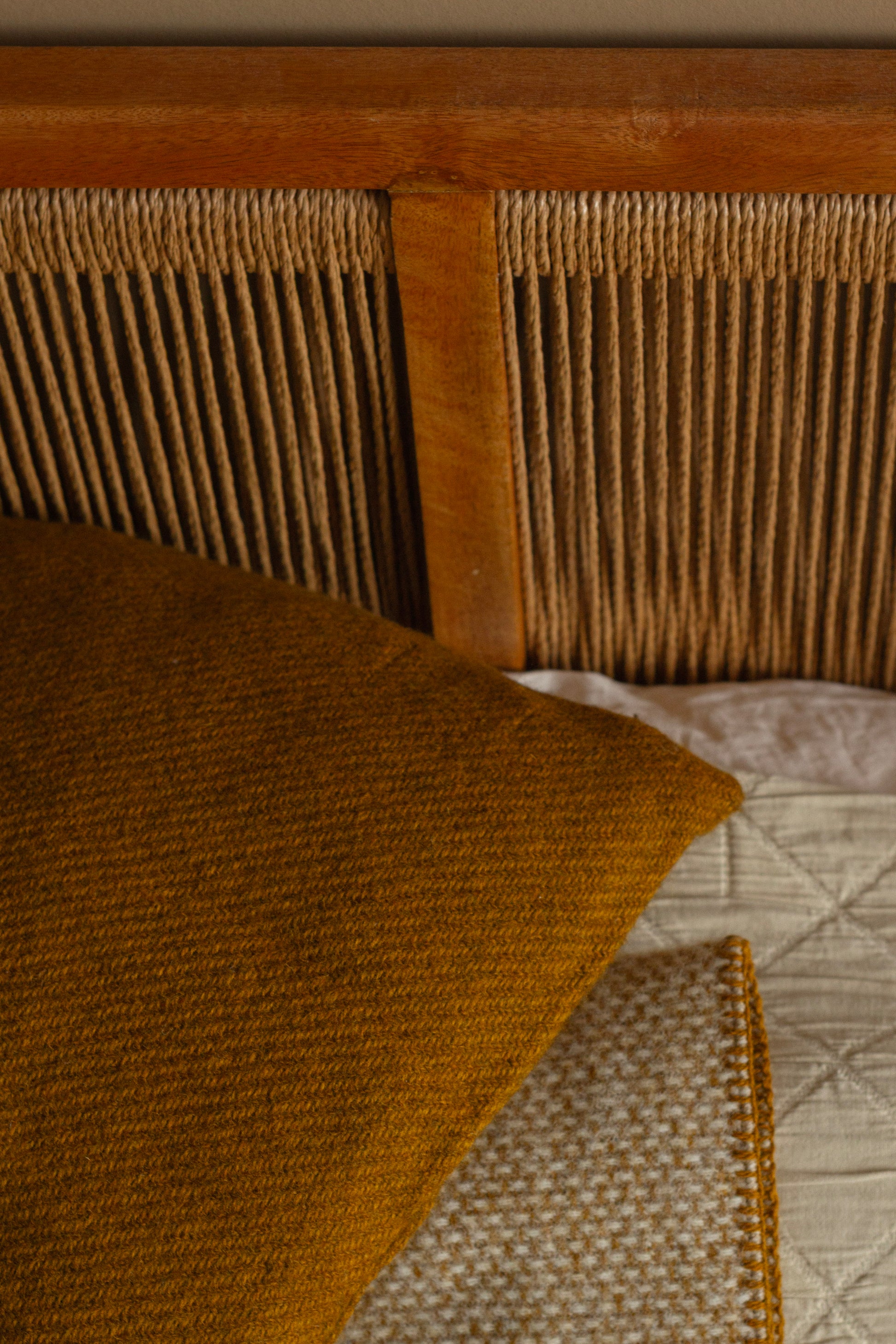 Een warme karamelkleur die direct gezelligheid brengt. De grove weving geeft structuur, terwijl de natuurlijke wol zorgt voor een zachte, tactiele afwerking.